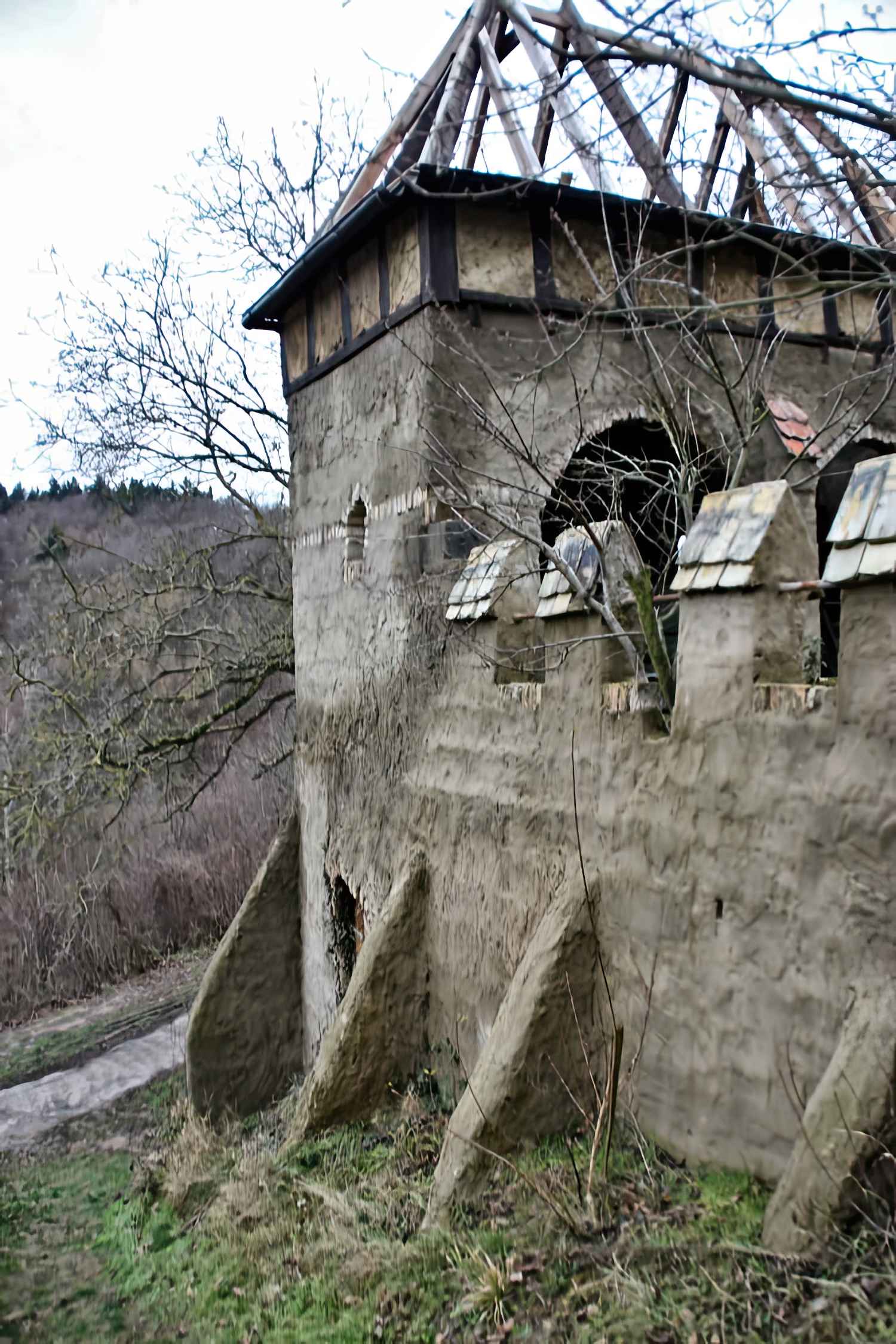 Rycerz Zajęczej Góry budował dalej – sam – za budulec służył mu gruz z różnych budów. Dziś, na powierzchni 30x 30 metrów stoi zamek, ma wieże, mury, okna, górny zamek i dolny, przedzamcze, most. Na każdym metrze widać pasję i miłość do detalu.