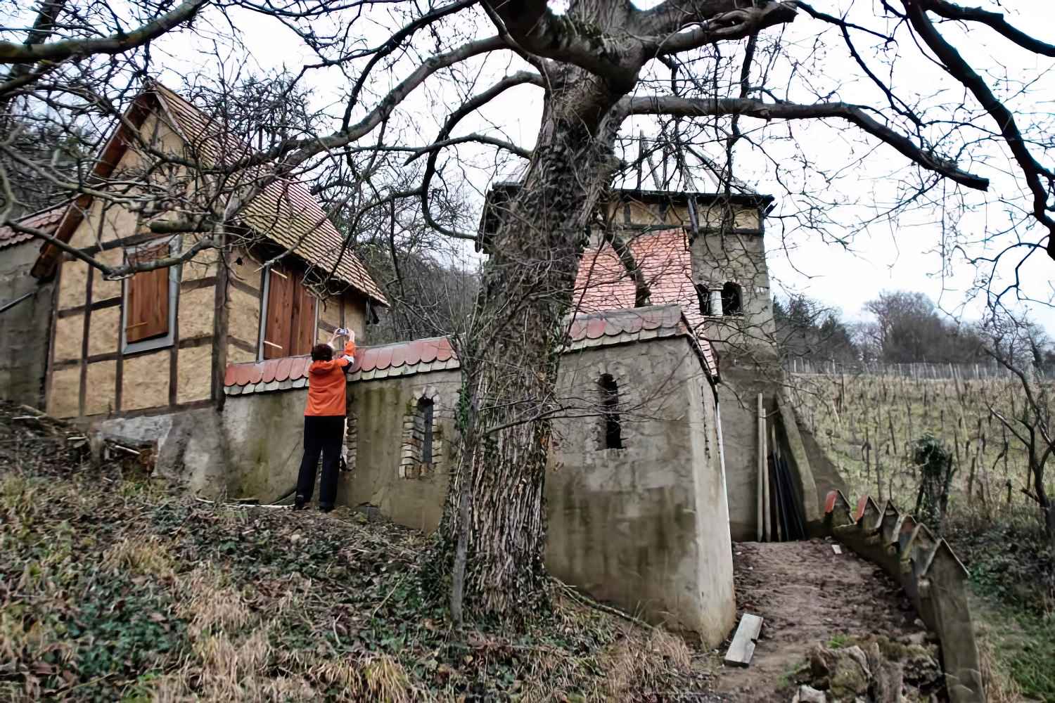 Pan S., pszczelarz, buduje ten zamek od siedmiu lat. Od początku starał się o urzędowe zezwolenie – miało powstać miejsce dla dzieci, dla spotkań z naturą, dla nauki i zabawy. Miasto nie dało zezwolenia i kazało zburzyć, co już pan S. postawił. Pan S. płacił kary i budował dalej, ma grubą aktę w urzędzie, jednak na miejscu nikt nie interesował się postępem i wzrostem murów.