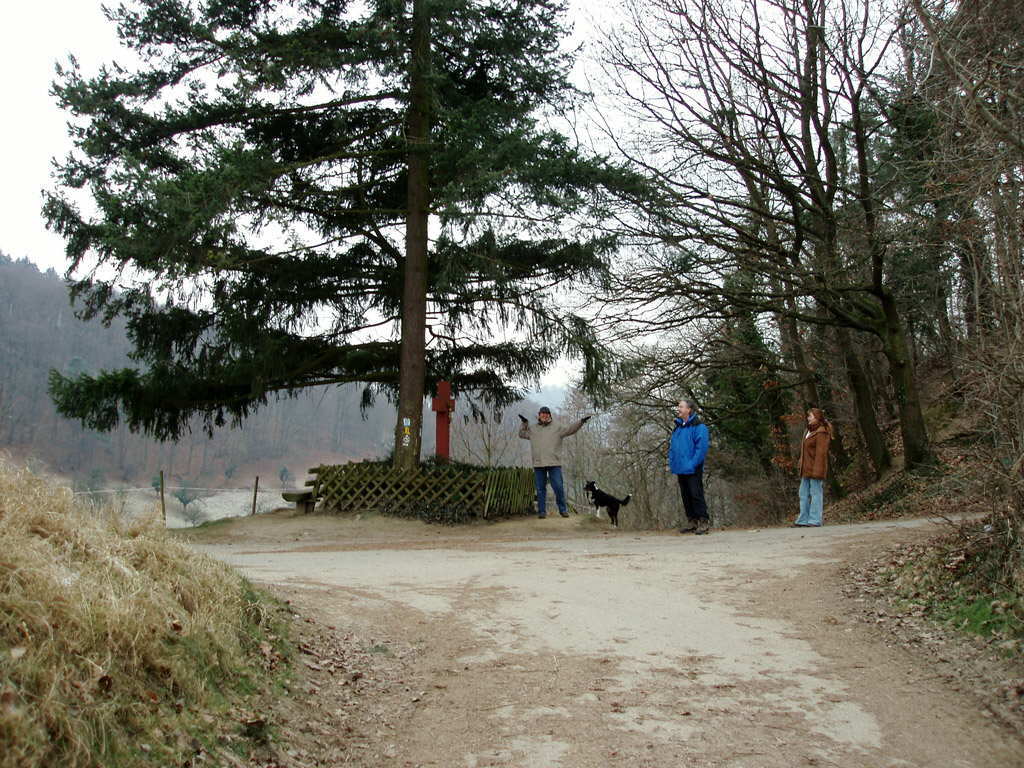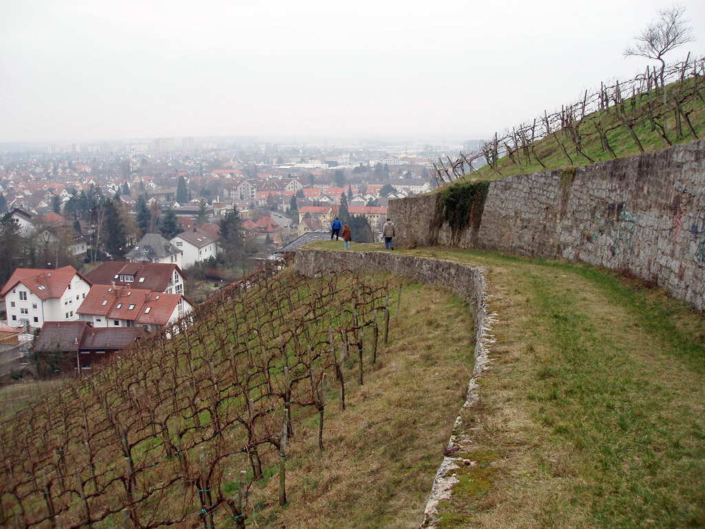 Wczoraj był piękny słoneczny i mroźny dzień. Dziś słonce nie chciało się pokazać, ale jak na to, że zapowiedziany był śnieg – to nam było jeszcze dobrze i sucho. Przy ok minus 3°C wybraliśmy się z przyjaciółmi na spacer. Zawieziono nas do Hambach, to wiejska cześć miasta, ciągnąca się kilka kilometrów w Odenwald. Stamtąd wracaliśmy do domu, ponad 7km, przez las, wzgórza i winnice.