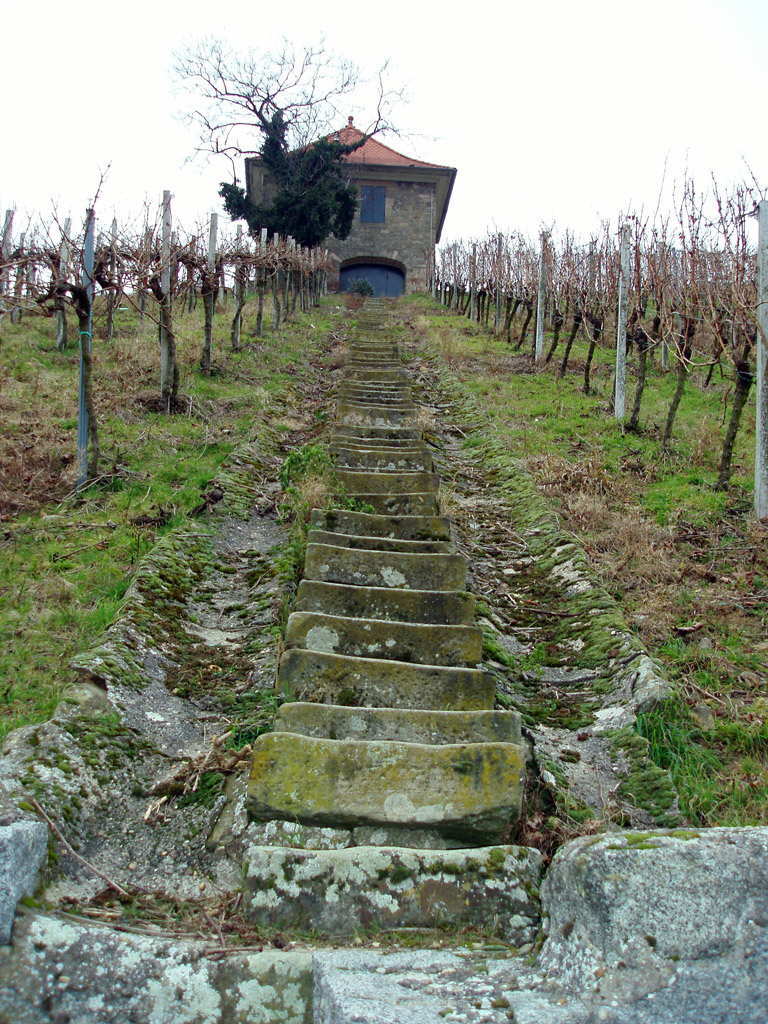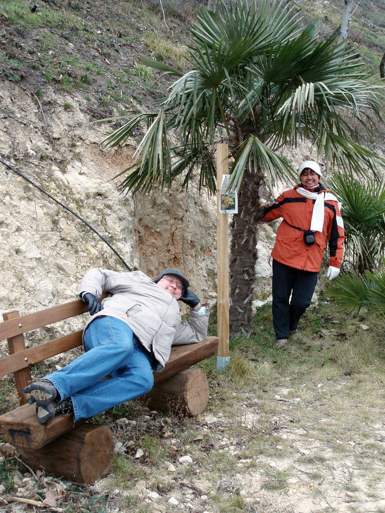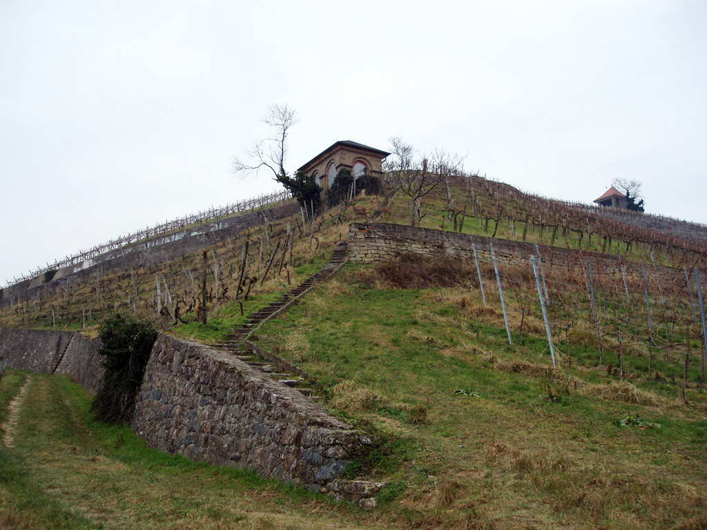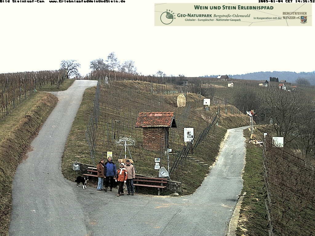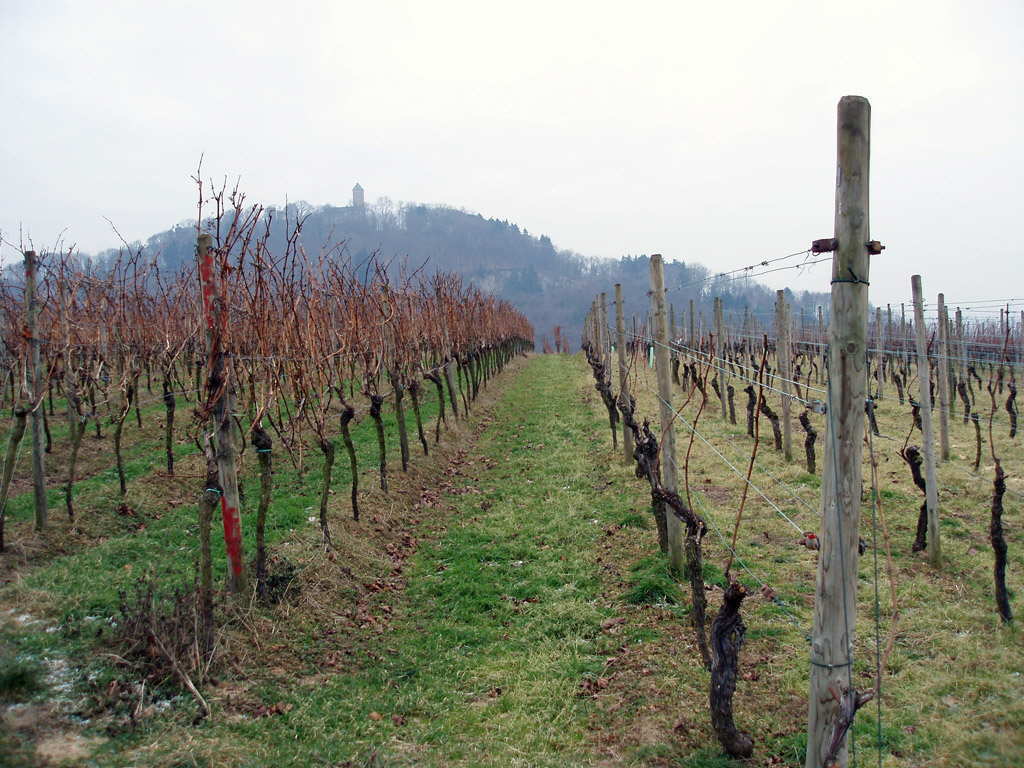 Przechodziliśmy przez Steinkopf, winnice, którędy już szliśmy raz, szlakiem „Wein und Stein„,ale wtedy przeoczyliśmy wskazówkę do śródziemnomorskiej botaniki. Nadrobiliśmy to teraz i w zimowym nastroju wzionęliśmy trochę urlopowo-palmowej atmosfery. Winorośl już jest w wielu miejscach przycięta, żeby na następny rok ładnie rosło nowe winko. Przechodząc koło web-cam nie omieszkaliśmy znów pokiwać do internetowej kamery. To taka fajna zabawa, potem siebie szukać spośród kilkuset zdjęć i znaleźć!
