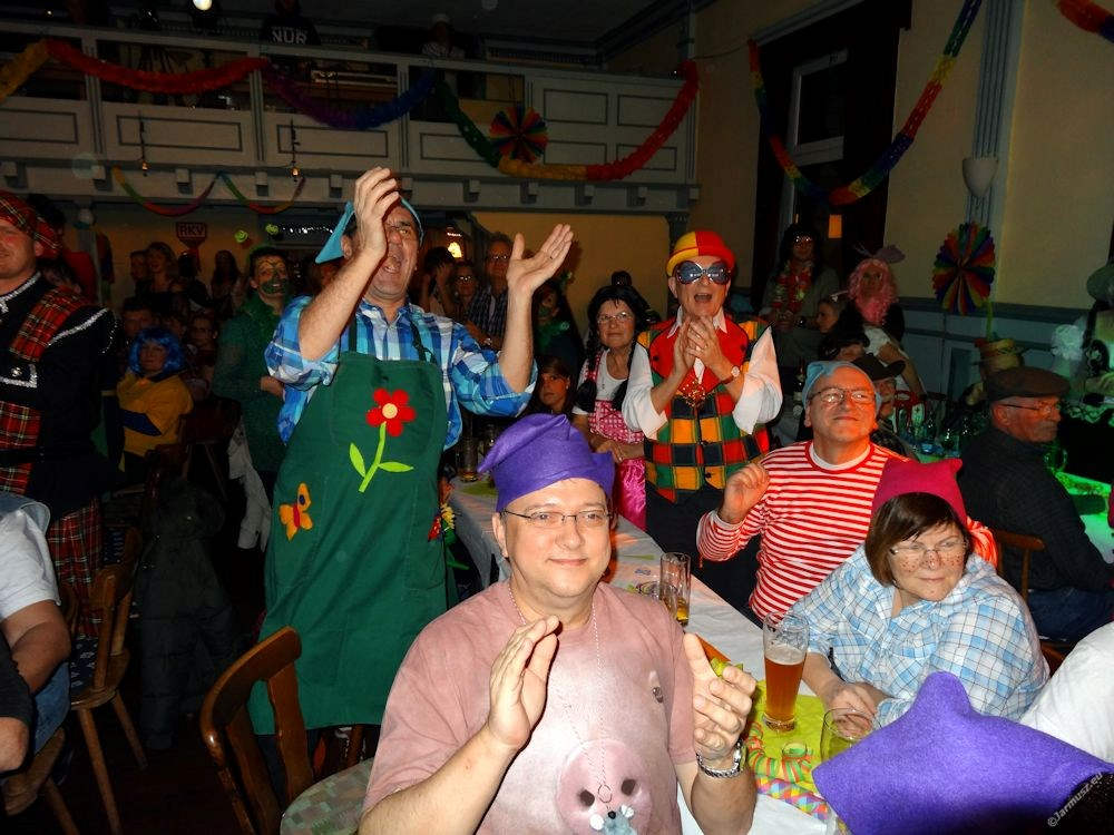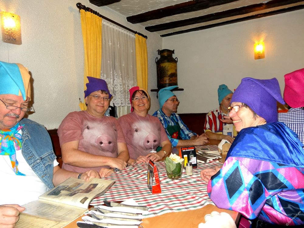 Karnawał zawitał na Bergstrasse. W piątek byliśmy 20 km od Heppenheim na tzw. posiedzeniu karnawałowym. Nasza grupa – 20 osób – miała dla rozpoznania w tłumie kolorowe krasnoludkowe czapki. Po wspólnej kolacji, przeszliśmy do sali imprezowej. Na dole wesoła publiczność przebierańców, na scenie balety, tańce, śpiewanki, skecze i rymowane przemówienia na tematy aktualne i lokalne. Litrami lały się …woda i piwo bezalkoholowe, bo wiele osób było samochodami, a wiele innych nie potrzebuje alkoholu do zabawy. I było też wesoło. I to jak! Odchodziliśmy przed północą, w takcie poloneza wijącego się między stołami, ale to nie był koniec zabawy – po polonezie zaproszono na „trzecią polowę”- Acha… teraz jeszcze jeden i drugi coś dopije.