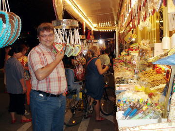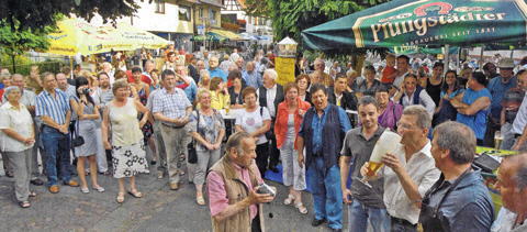 wzmacniając się np. bułką ze stekiem, pizzą, albo indyjską specjalnością. Na koniec jeszcze świeżo prażone migdały i orzechy. Im późniejszy wieczór tym więcej ludzi się schodzi. Szczególnie, że w tym czasie mamy w Heppenheim wielkie upały i dopiero wieczór przynosi odprężenie. A piękna pogoda i gwieździste niebo nalezą również do tradycji tej imprezy. Jak na urlopie.