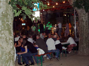 Wieczorem znów się plac zapełnia publicznością chętną do zabawy. Niestety Niemcy nie tańczą tak dużo jak Polacy, wolą się przyglądać. Są dwa miejsca z muzyką taneczną, zbiera się tam zawsze dużo ludzi, siedzą i stoją, podrygują w takt, popijając swoje napoje i są zadowoleni.