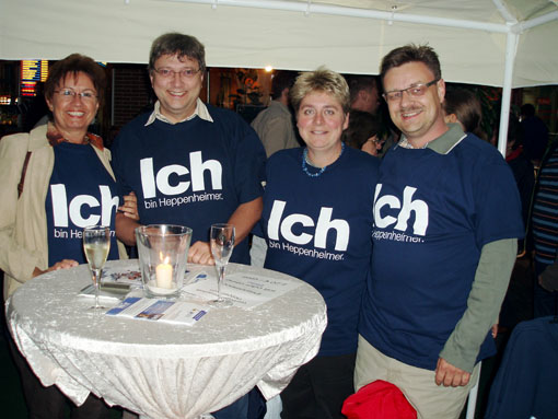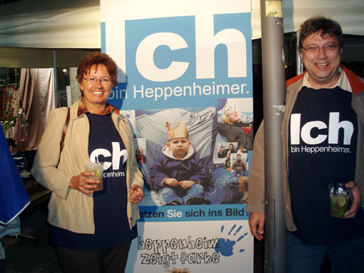 W czasie wieczoru rozwijała się dalej akcja „Heppenheim w kolorach”, która będzie miała kulminacyjny punkt we wrześniu. W ramach tej akcji coraz więcej mieszkańców ma już koszulki „Ja jestem z Heppenheim”, wczoraj na pewno sprzedano parę setek, im późniejszy wieczór, tym bardziej ujednolicona była publiczność.