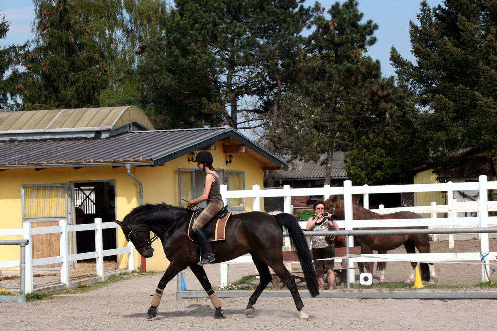 Dawno już nie przyglądaliśmy się jeździe. Zimą jest nam za zimno, starczy, że córka marznie (trzeba było wybrać szachy), ale latem – pewnie podjedziemy jeszcze czasem na rowerze. Tym bardziej, że szef stajni jeszcze nie jest gotowy z budową i nad halą będzie kawiarenka. No, mając cel przed oczyma (lody, kawa, piwko) będzie łatwiej gnieść w pedały.