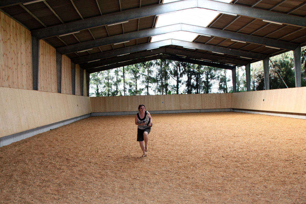 Wiele się zmieniło w stajni od naszego ostatniego pobytu, jesienią, i jeszcze jest dużo do zrobienia. Pierwszy raz widzieliśmy nową halę, a ponieważ nie było koni, więc musiałam ją sobie sama wypróbować – jest OK.