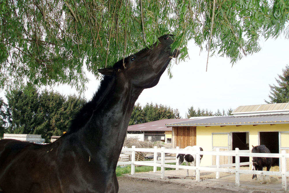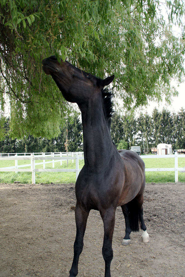 A Karolek odkrył po treningu, że może robić również za żyrafę. To jego pierwsze lato w tej stajni – kto wie, czego się jeszcze tam nauczy?
