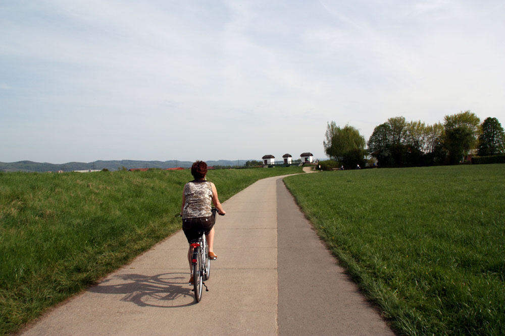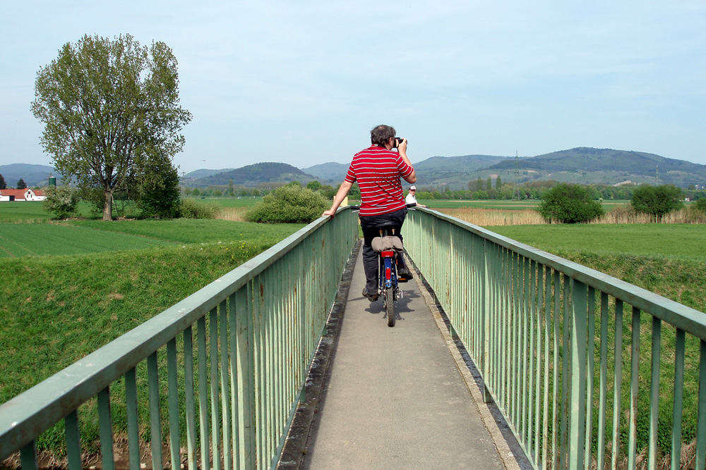 Jednak w szalonym (…) tempie, z szumem w uszach i bielą przed oczyma, wzdłuż zielonych łąk Weschnitz, mijając się z wieloma innymi siodłowcami, dotarliśmy do celu. O powrotnych 5 kilometrach na razie nie myślimy. Co tam 5! Nasz sąsiad jeździ dla przyjemności 30 – 40.