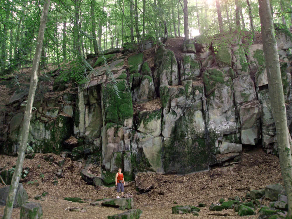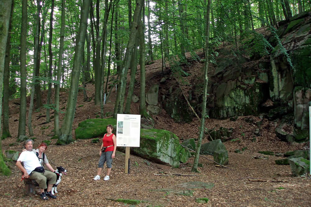 Jurek znalazł trasę do wędrówki od lokalu Schardhof, w Odenwaldzie na Trommie (najwyższe wzniesienie w okolicy, 577m), trochę ponad 5 kilometrów. Lasy, pola – Odenwald w pełnej krasie. A nasi towarzysze też już wiele lat nie byli w tej okolicy, więc nowość dla wszystkich. Po drodze nawet trafiliśmy na historyczny kamieniołom.