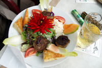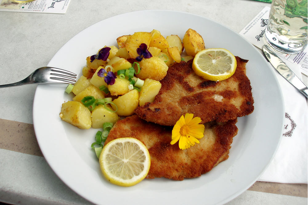 Po spacerze siedliśmy pod orzechem w lokalu Schardhof i tu niespodzianka. Daleko od świata, w głębi Odenwaldu, doznaliśmy ekscelentnej kuchni.