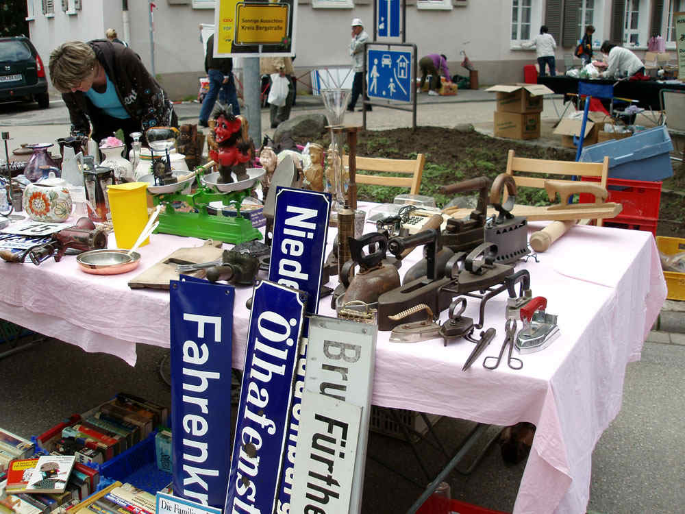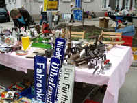 Dziś zajechałam o 14:30 (po pracy i drzemce) i niestety musiałam z rozczarowaniem zobaczyć już wiele pustych miejsc. Mimo fajnej pogody odbywało się już wielkie pakowanie. Szkoda. Ale wypatrzyłam jeszcze starą lampkę naftową, tą z lusterkiem, 5 Euro. „Ach, 3,50 też starczy, ok?” No, i będzie nam wieczorem staromodnie podświetlała na tarasie.