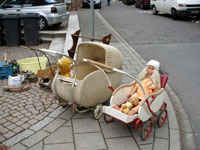 Lubię chodzić i oglądać starocie. Na pchlim targu prawie zawsze coś się znajdzie, coś, co już dawno szukałam (chociaż po spełnieniu marzenia, może się zdarzyć, że obiekt wyląduje za kilka lat znów na takim stole, choć nigdy nie był używany). Coś nowego do dekoracji, do poczytania… Ciekawe były dziś stare wózki dziecięce (nawet na resorach! p. zdjęcie), które się fajnie nadają do celów dekoracyjnych, np z suchym bukietem, albo obsadzone rośliną.