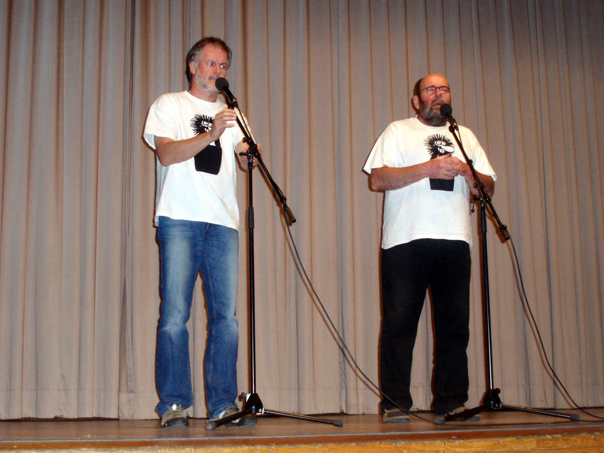 Wczoraj byliśmy na występie kabaretowym „Babenhäuser Pfarrer-Kabarett„. Za tą nazwą ukrywa się dwóch ewangelickich pastorów, którzy od kilku lat urlopują od swojego zawodu, a w zamian doprowadzają regularnie ludzi do śmiechu. Bez dekoracji, kostiumów, wyreżyserowa -nych tekstów. Poruszając trafnie, bez omieszek, czasem zgryźliwie, tematy z naszego życia, polityki, jak i obu kościołów. I to w hessyjskim dialekcie! Sekwencje tak trafiały w sedno, że słuchaliśmy, jakby mówili o nas – po reakcji publiczności przypuszczając, wszyscy czuli się tak samo podglądnięci.
