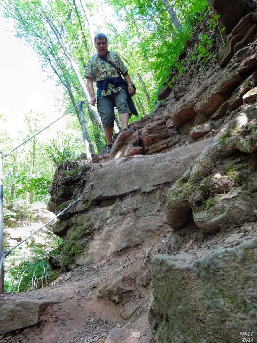 Ścieżka jest zawsze zabezpieczona linami i czasem trzeba pokonać duże stopnie skalne i korzenne. Niektóre miejsca przeszliśmy tyłem, bo tak było łatwiej.