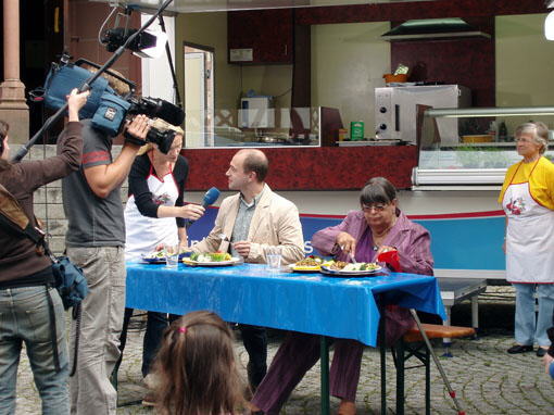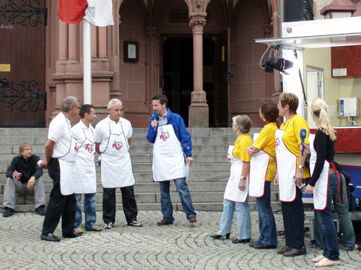 Telewizja Hesji nagrywała dziś w Heppenheim program „Pojedynek w kuchni”. Trzy panie ze Związku Kobiet Wiejskich przeciwko trzem członkom męskiego chóru „Harmonia”.